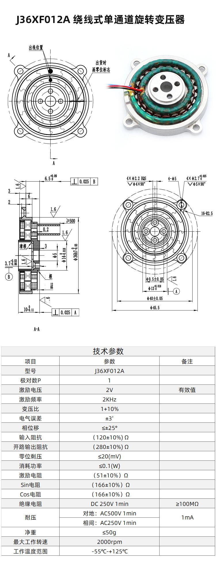 25XU7104 旋转式旋转变压器 旋变 轴孔6mm 外径25mm系列 4对极 引线型